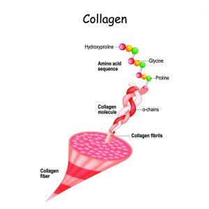 Figure 1: A collagen fiber is made up of fibrils which are made up of microfibrils containing collagen molecules which in turn are composed of three amino acids