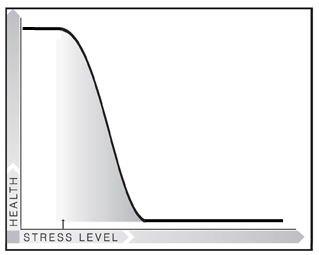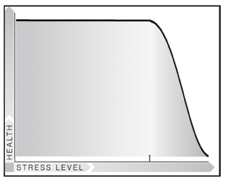 FIGURE 1 – Fragile: Here we see how stress beyond a certain tolerance level can cause a fragile object to be shattered or broken. The transition is sudden, once the tolerance level is reached. FIGURE 2 – Robust: Here we see how, regardless of the stress levels, a robust object is unaffected by any amount of stress. Until a limit, it neither benefits from the stress, nor is it harmed.