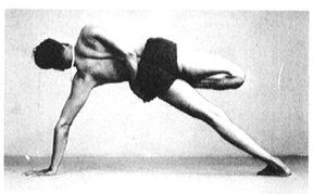 It is a lot easier to add a “micro-bend” to hyperextended elbows in Down Dog than in Side Plank, because two arms are taking up the weight of the pose in Down Dog. In Side Plank there is only arm supporting the body’s weight: it requires a tremendous amount of strength to keep the arm straight if it is not locked out in that position. Anyone who has to hyperextend his or her elbow to reach lock out will do so. We saw it in the weight lifters, we saw in the Yoga Journal yogini, and we can even see this in the venerable B.K.S. Iyengar. In his book, Light on Yoga, there are several examples of him hyperextending his elbows and locking out. One example is shown here in this picture of Iyengar in a variation of Side Plank.[16] He is locked out – and seems to be quite content to stay there.
