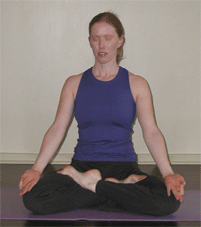 Now, what can we do about the pain? The first thing that we can try is to sit up on a cushion or two and bring the foot in closer to the body. Now that we understand that a bent knee can twist, the more we bend the knee the most twisting can safely occur. If you feel pain in one knee when you sit cross-legged, bring the troubled leg’s foot in first. This allows more flexion of that knee and may be sufficient to stop the pain. Likewise, if you feel pain in Pigeon Pose or Swan, bring the front foot more in towards your hip, flexing the knee more, which allows for more twisting of the knee. Also, sitting higher changes the angle of the femur in the hip socket and may allow you to externally rotate your leg more, reducing compression in the knee. Even in Pigeon you can “sit higher” by placing a cushion under your front leg’s hip.